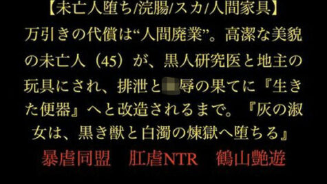 アダルト 【フル漫画】【未亡人堕ち/浣腸/スカ/人間家具】万引きの代償は‘人間廃業’。高潔な美貌の未亡人(45)が、黒人研究医と地主の玩具にされ、排泄と陵●の果てに『生きた便器』へと改造されるまで。『灰の淑女は、黒き獣と白濁の煉獄へ堕ちる』 JHentai